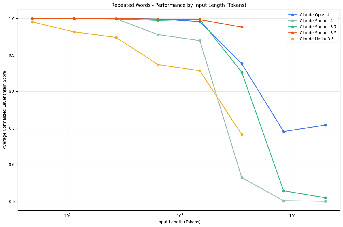Additionally, we include a conversational question-answer evaluation using LongMemEval [2], as well as a synthetic task in which models replicate a series of repeated words. Each task remains intentionally simple and is deliberately controlled to isolate the impact of context length alone.