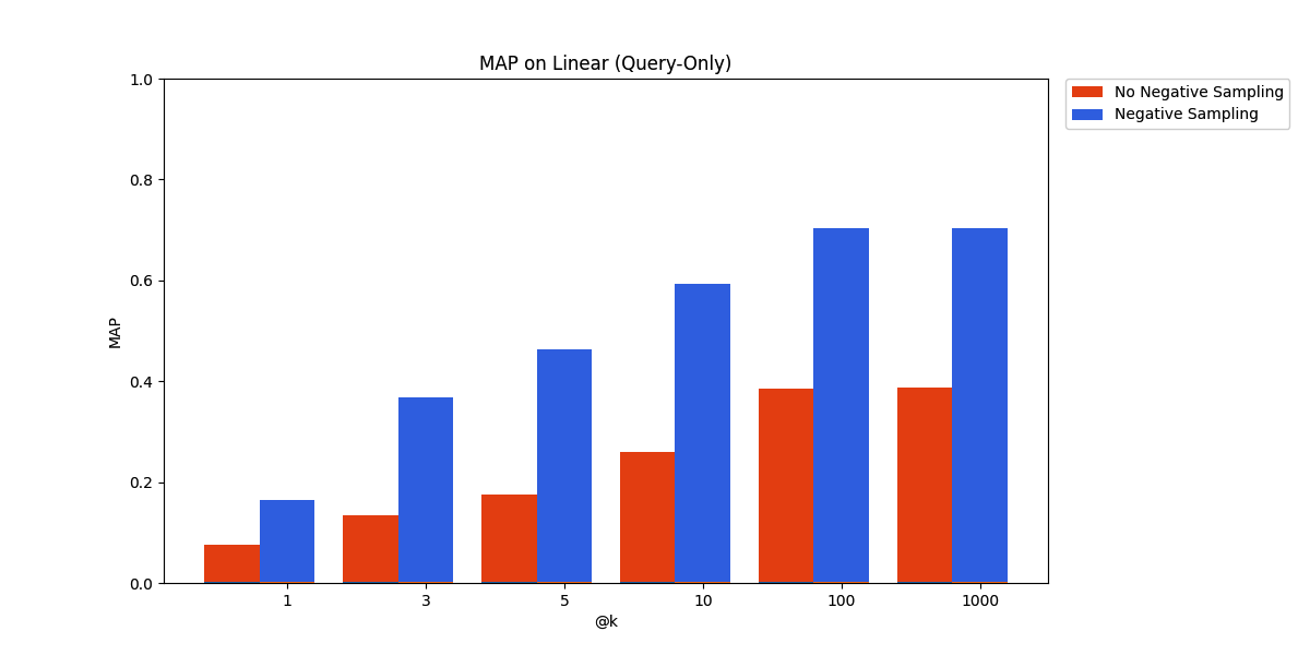 The result is definitive and has long been established by previous work – negative sampling, by sampling randomly from unrelated documents, is a cheap way to get a sizable benefit on retrieval performance.